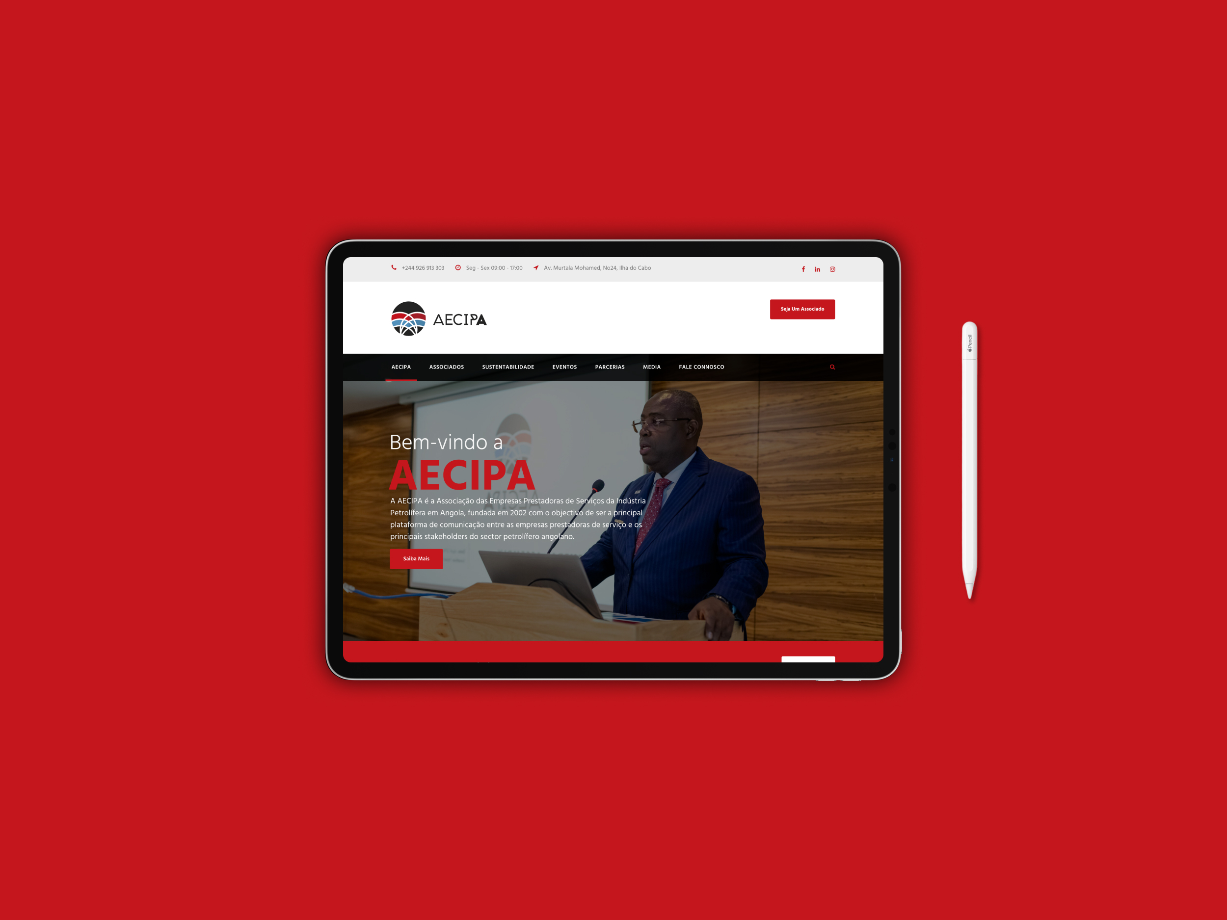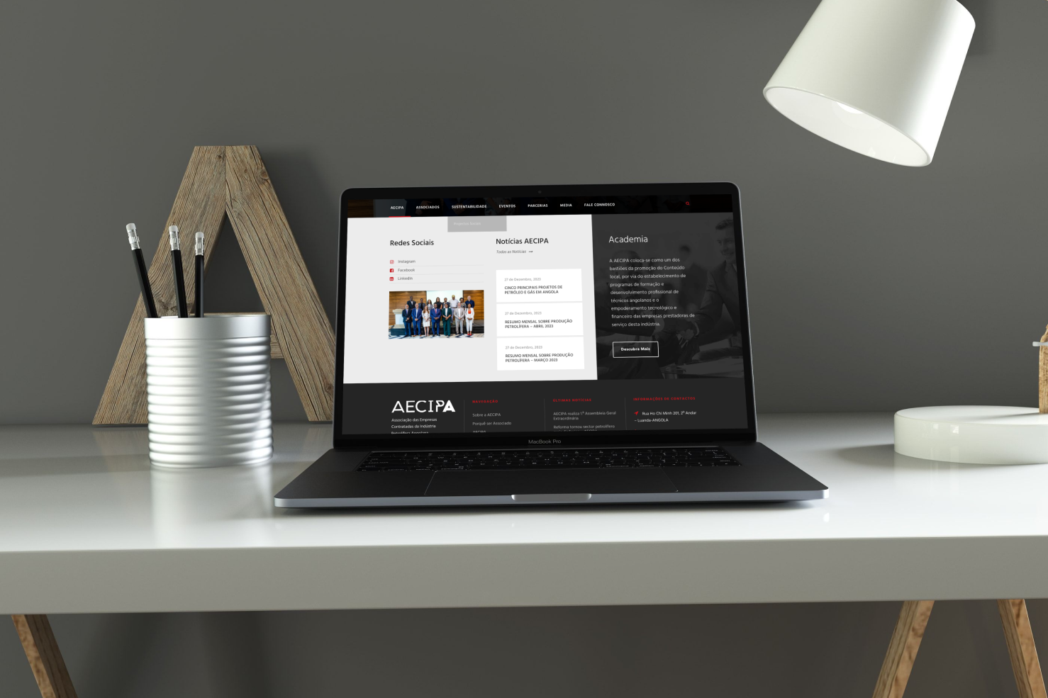 I developed the website for AECIPA, the Association of Companies Providing Services in the Petroleum Industry in Angola, founded in 2002, which serves as the main communication platform between service providing companies and the main stakeholders in the Angolan oil sector.
